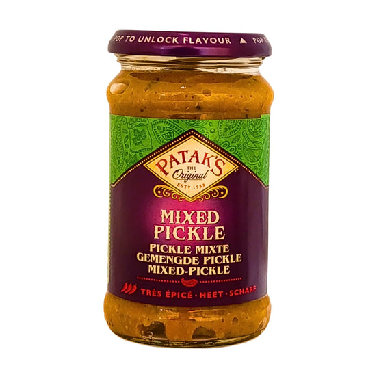 Upptäck en djärv och autentisk smakresa med Patak’s Mixed Pickle – en klassisk indisk kryddblandning av mango, lime, chili och grönsaker inlagda i en kraftfull oljebas och traditionella kryddor. Varje burk är packad med intensiv smak som lyfter varje måltid, oavsett om du äter curry, grillat eller en enkel smörgås.