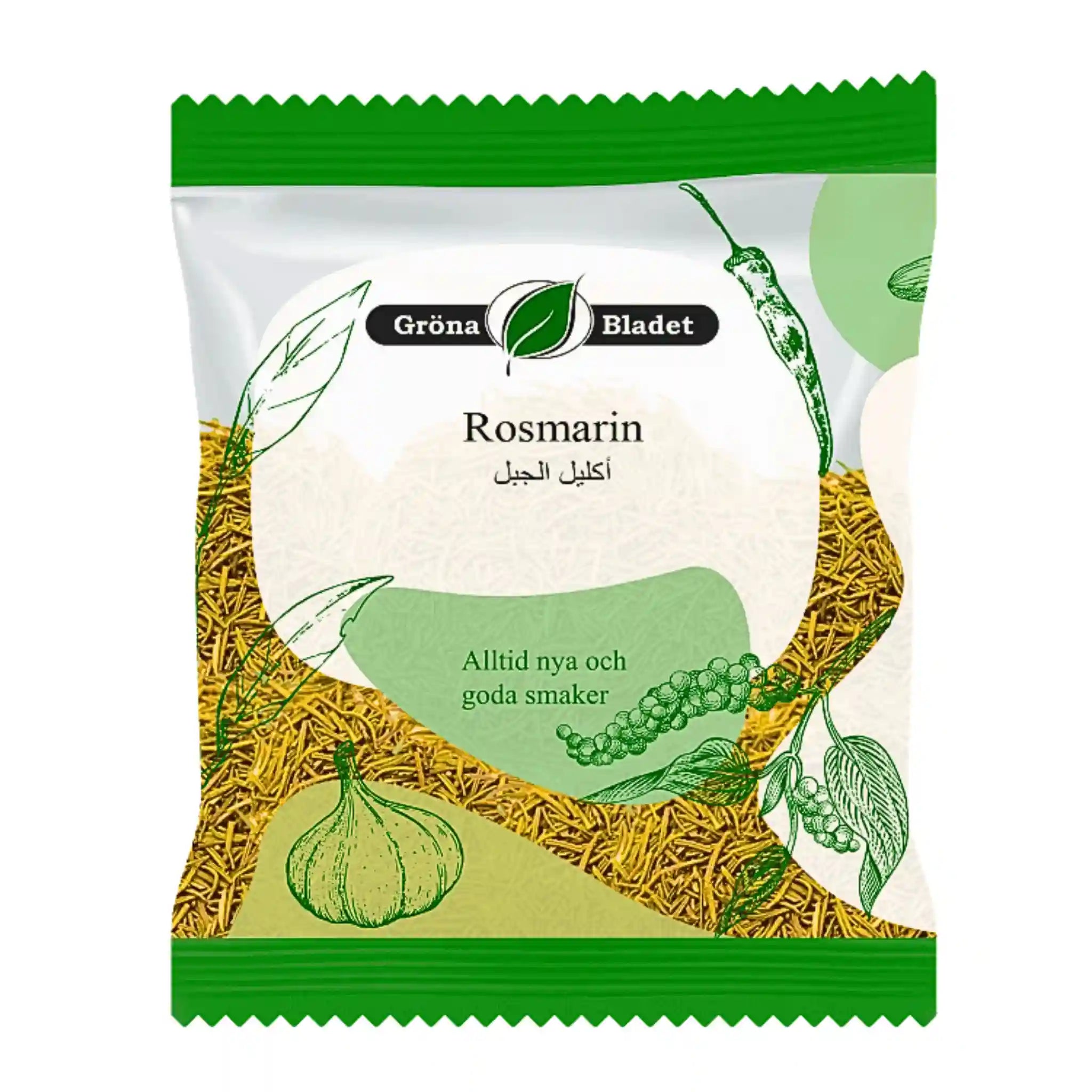 Gröna Bladet Rosmarin 20g är en klassisk och aromatisk krydda som ger dina maträtter en härligt örtig karaktär. Perfekt till ugnsrostade grönsaker, potatisrätter, kyckling, lamm och medelhavsinspirerad matlagning. Den torkade rosmarinen bevarar sin kraftfulla smak och doft, vilket gör den till en oumbärlig ingrediens i både vardagsmat och festmåltider.