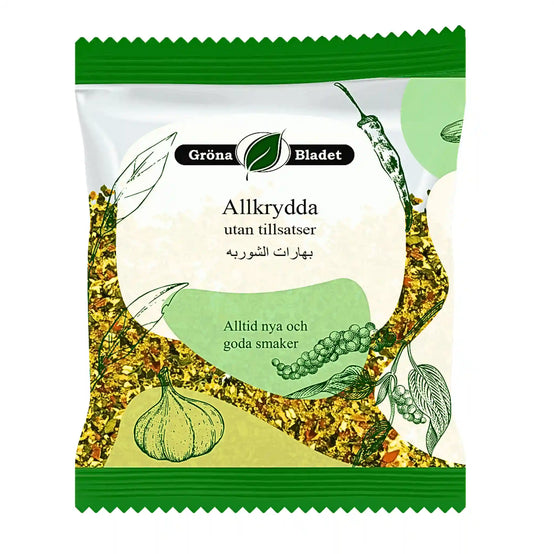 Letar du efter en kryddblandning som passar till allt? Gröna Bladet Allkrydda är din nya favoritingrediens i köket! Med sin välbalanserade blandning av smakrika örter och kryddor ger den en härlig smak till kött, kyckling, grönsaker, soppor, risrätter och mycket mer.