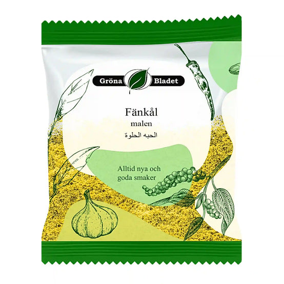 Upptäck den söta, lakritsliknande smaken av Gröna Bladet Fänkål, Malen 40g – en oumbärlig krydda i både orientaliska, europeiska och ayurvediska kök!