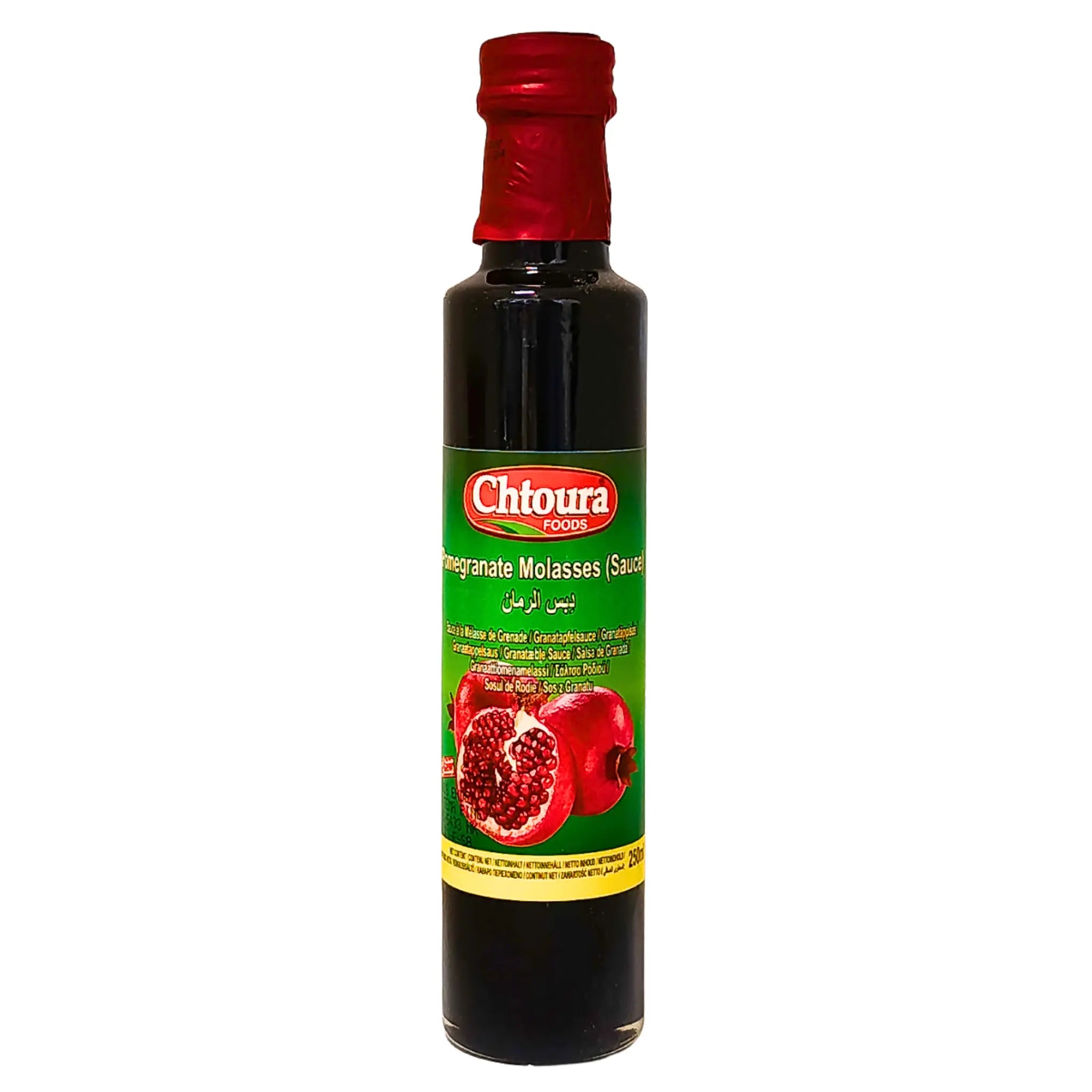 Chtoura Foods Granatäppelsås 250ml är en smakrik och aromatisk sås som lyfter dina rätter till nästa nivå. Med sin sötsyrliga karaktär är den perfekt som dressing i sallader, som glaze till grillat kött, i marinader eller som smaksättare i både traditionella och moderna recept. En äkta smak av Mellanöstern – koncentrerad kvalitet i en praktisk flaska.