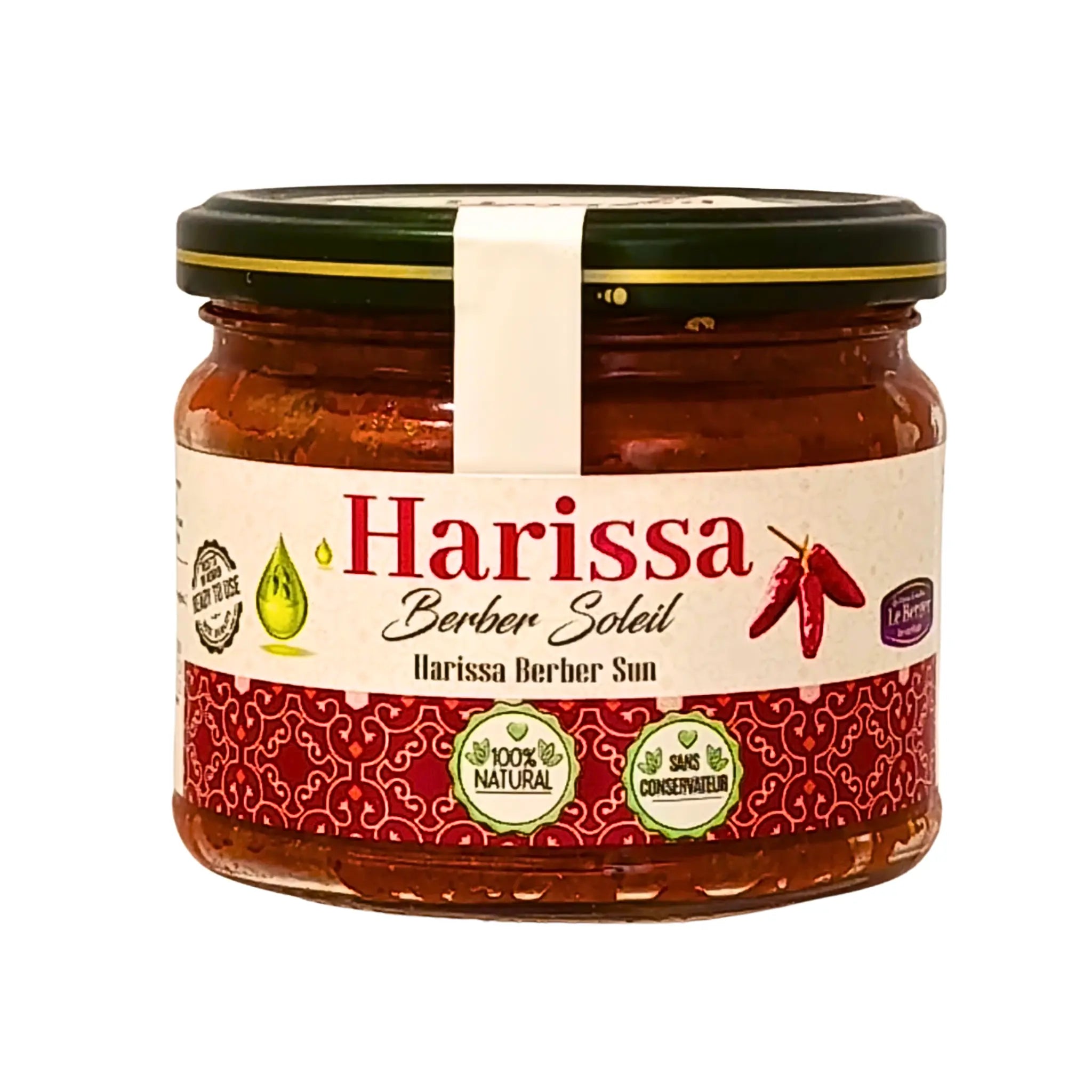 Upplev den eldiga smaken av Nordafrika! Harissa Berber Soleil är en traditionell tunisisk chilipasta gjord på solmogna chilipeppar, vitlök och aromatiska kryddor. Den är perfekt som smaksättare i grytor, marinader, couscous, soppor eller som starkt tillbehör till kött och vegetariska rätter.