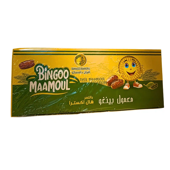 DAMASCO Maamoul Bingoo med kardemumma 300g är klassiska mellanösternkakor fyllda och smaksatta med aromatisk kardemumma. Maamoul har en mjuk och smulig konsistens och bjuder på en perfekt balans mellan sötma och kryddig smak. Passar utmärkt till kaffe eller te och är ett självklart val vid högtider, gästmottagningar eller när du vill unna dig något extra gott.