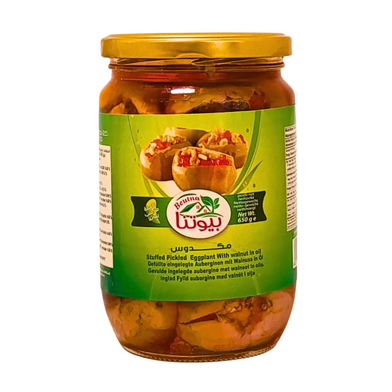 Upptäck smaken av Mellanöstern med Makdous Beutna 650g – traditionellt inlagda auberginer fyllda med valnötter, vitlök och kryddor. En delikatess som bjuder på rik smak, fyllighet och arom, perfekt som aptitretare, tillbehör på mezetallriken eller som smakförhöjare till varma rätter. Autentisk kvalitet direkt från Mellanösterns matkultur.